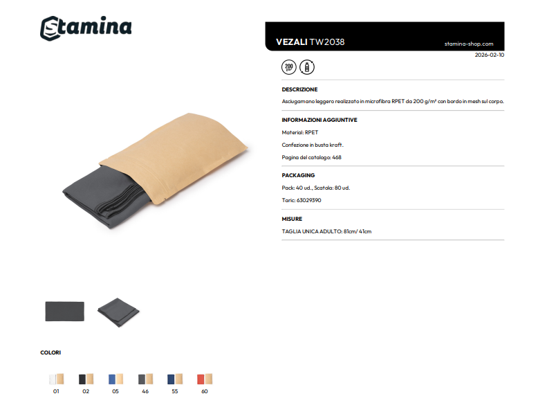 Asciugamano leggero realizzato in microfibra RPET da 200 g/m² con bordo in mesh sul corpo.