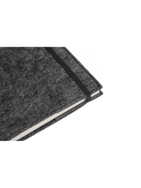 Block notes A5 con copertina in feltro riciclato (100% rPET). Il quaderno rimovibile ha la copertina in carta riciclata al 100% e 160 pagine a righe colore avorio sempre in carta riciclata al 100%.
