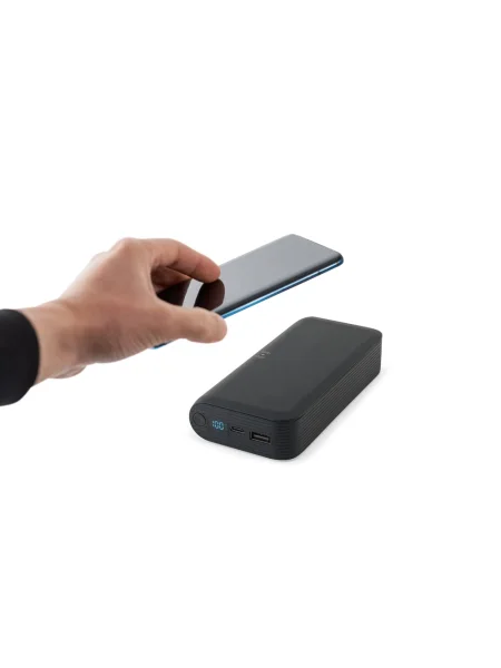 Power bank da 20000 mAh con design elegante e ricarica wireless superveloce, realizzato in ABS riciclato (100% rABS). Dotato di schermo LED integrato che indica il livello di carica, consente di restare sempre connessi e pronti all’uso. L’ampia area di personalizzazione e i dettagli testurizzati sui lati ne esaltano lo stile premium. Offre una potenza di ricarica wireless fino a 15W, con ingresso USB-C (PD 20W) e doppia uscita: USB-C (PD 20W) e USB-A (QC18W). Include cavo di ricarica USB-C con adattatore USB-A/USB-C. Fornito in confezione regalo in carta kraft riciclata. Dimensioni 141 x 72 x 29 mm | Scatola: 145 x 93 x 34 mm.