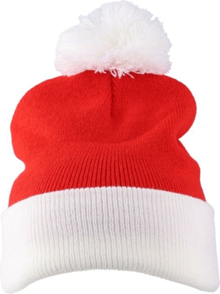 Berretto natalizio lavorato a maglia relazzita in acrilico al 100%, con un design festoso e pom pom in poliestere PET.