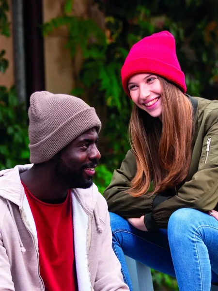 Scopri il berretto perfetto per il tuo look casual: un mix di stile e comfort, con una lavorazione a maglia di carattere e colori caldi e vibranti che non passano inosservati.