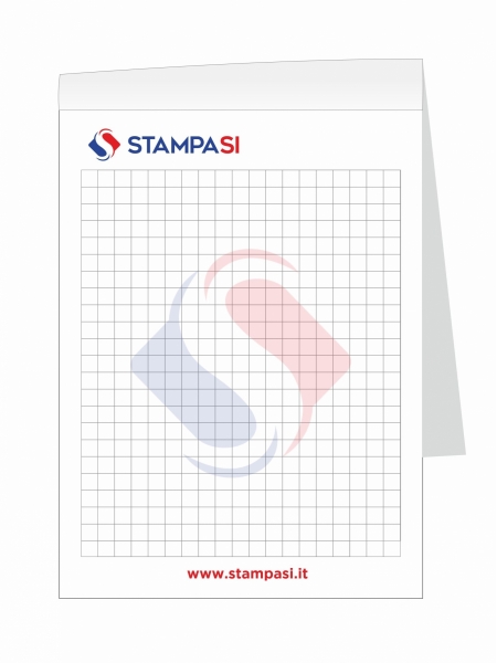 I block notes in A3 (29,7 x 42 cm) sono strumenti ideali per appunti, schizzi e note promozionali su ampia superficie. Il modello incollato da 25 fogli utilizza carta Offset bianca da 80 g/m². La stampa è a 4 colori fronte. Perfetta per inserire logo, griglie o grafica personalizzata.