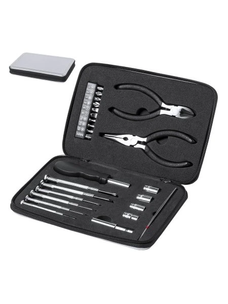 Si, StampaSi dispone di una borsa porta utensili completa. Questo kit contiene venticinque accessori in una robusta valigetta in alluminio. Include set di cacciaviti di precisione, impugnatura multifunzione, punte intercambiabili, cacciaviti piatti e a croce, teste a tubo, pinzette e pinze ed è confezionato singolarmente. La stampa laser si presta alla personalizzazione di questo articolo rendendolo unico e duraturo nel tempo. Ma non solo, vi consigliamo anche la borsa attrezzi per auto, disponibile sul nostro e-commerce sempre nella pagina dedicata: è resistente, imbottita, in poliestere riciclato 600D che ne determina la densità del tessuto. I suoi comparti interni la rendono adatta per riporre i cavi di ricarica per auto elettriche.