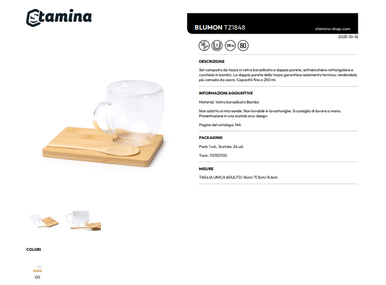 IL TUO PREVENTIVO Set composto da tazza in vetro sottobicchiere e cucchiaio BLUMON