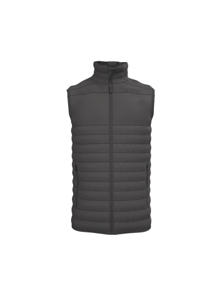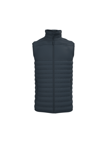 Bodywarmer trapuntato uomo con imbottitura interna. 100% poliestere 290T. Imbottitura interna: 100% poliestere. Fodera: 100% poliestere 290T tono su tono. Taglio dritto. Collo alto. Due tasche laterali foderate in 290T, con zip in nylon e tiretti tono su tono. Due tasche interne. Chiusura con zip in nylon tono su tono con protezione per il mento e tiretto. Trapuntatura orizzontale. Fascia di trapuntatura più ampia di 11 cm sul davanti e 14,5 cm sul retro, ideale per la personalizzazione. Finitura con bordino elastico tono su tono a giromanica e fondo capo. Passante interno al collo. Prodotto comprimibile nel proprio sacchetto. Etichetta del marchio staccabile. Imbottitura iniettata: il peso può variare in base alle zone del capo. Il peso totale è indicativo.