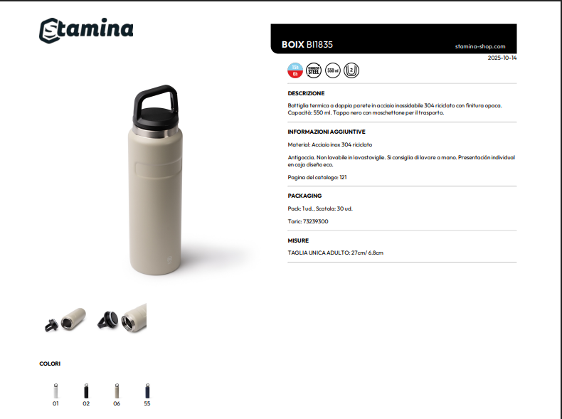 Borraccia termica a doppia parete in acciaio inossidabile 304 BOIX