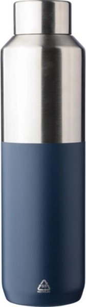 Borraccia acciaio inox riciclato con isolamento sottovuoto a doppia parete, ideale per mantenere la temperatura delle bevande. L’interno è in acciaio inox 304 e l’esterno in acciaio inox 201. Il tappo in PP con parte superiore in acciaio inox 201 completa il design. Riporta il logo “acciaio inox riciclato” inciso sul davanti. Capacità 600 ml. Fornita in confezione singola in scatola di cartone avana.