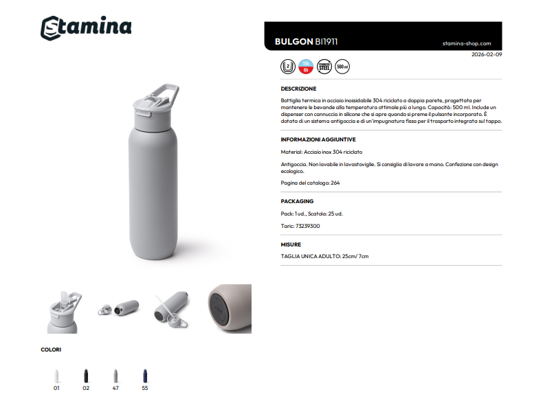 Borraccia in acciaio riciclato personalizzabile Bulgon 500 ml