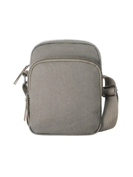 Piccola tracolla moderna, scomparto principale parzialmente imbottito e con chiusura lampo, tasca anteriore con chiusura lampo, tasca a inserto piatta sul retro, pregiati accessori metallici, spallaccio di lunghezza regolabile. Dimensioni: 15x20x7 cm. Area personalizzabile: sulla tasca frontale 11x10 cm.