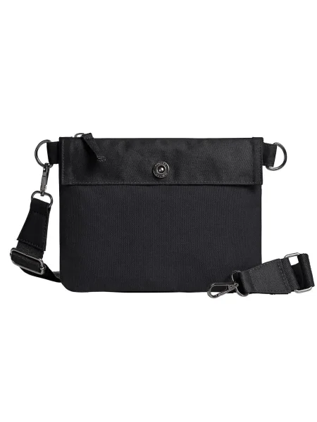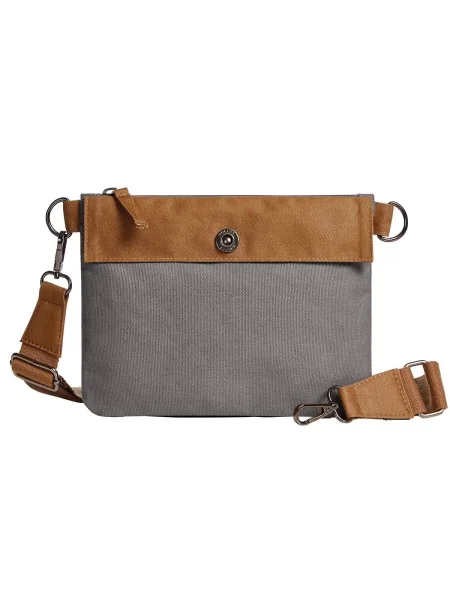 Borsa a tracolla moderna con chiusura lampo, scomparto principale con zip, tasca anteriore richiudibile con clip, tracolla di cotone regolabile e removibile. Dimensioni: 23x18x0,1 cm. area di stampa su tasca anteriore: 17 x 8 cm.