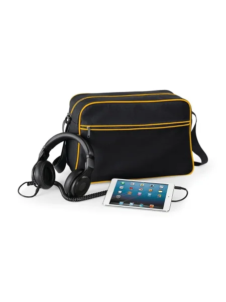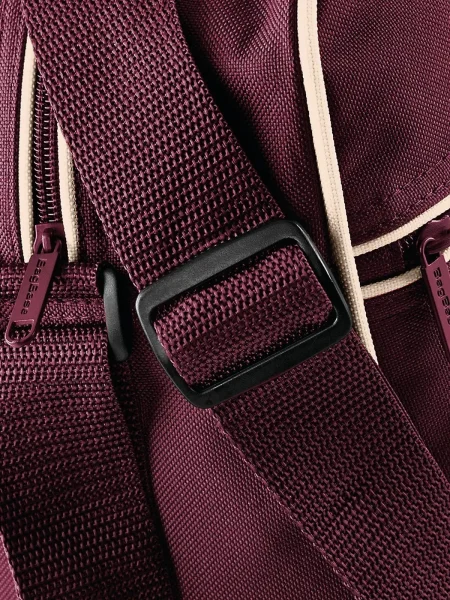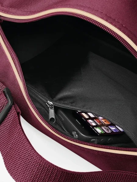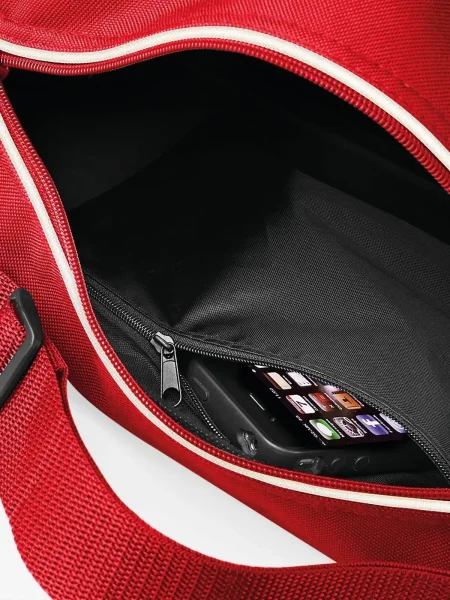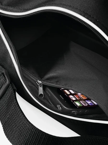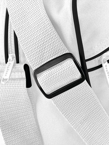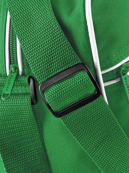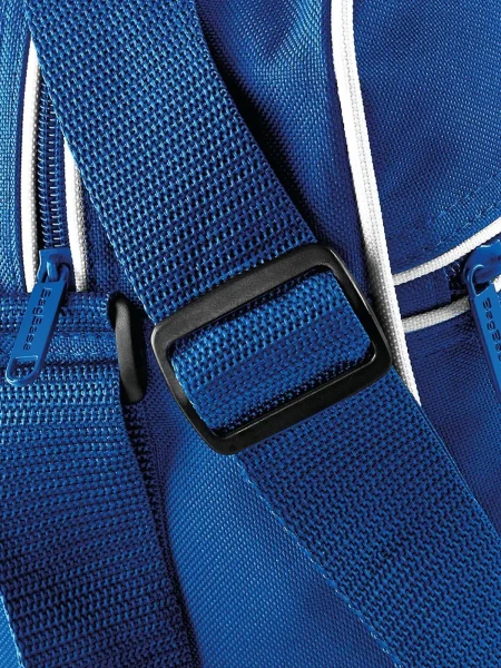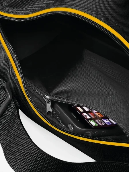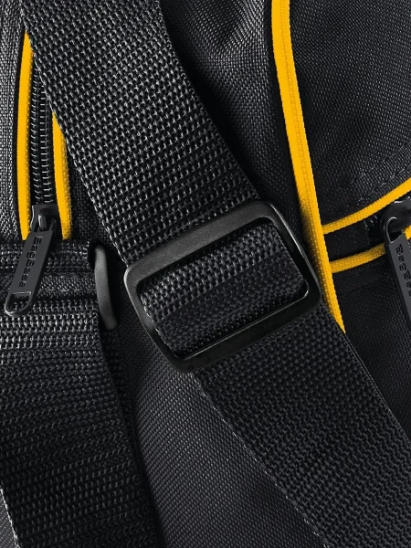 Borse con tracolla lunga e doppio manico. Tasca frontale con zip e piccola tasca retata interna. Dimensioni: 39 x 29 x 16 cm, capacita': 15 litri, area di stampa: 34 x 13 cm.