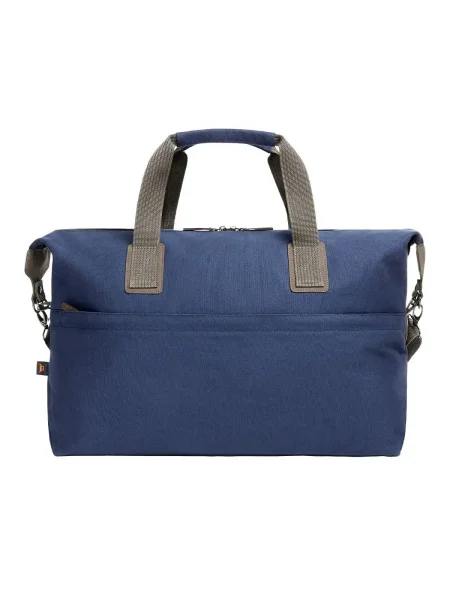 Borsa da viaggio personalizzata sportiva dotata di un ampio scomparto principale con chiusura lampo e fondo imbottito per una maggiore protezione. Presenta una spaziosa tasca frontale con chiusura lampo, tracolla regolabile e rimovibile per un trasporto comodo, e manici con polsini per un'impugnatura confortevole. Dimensioni: 50x31x20 cm. Area personalizzabile: tasca frontale 32x13 cm.