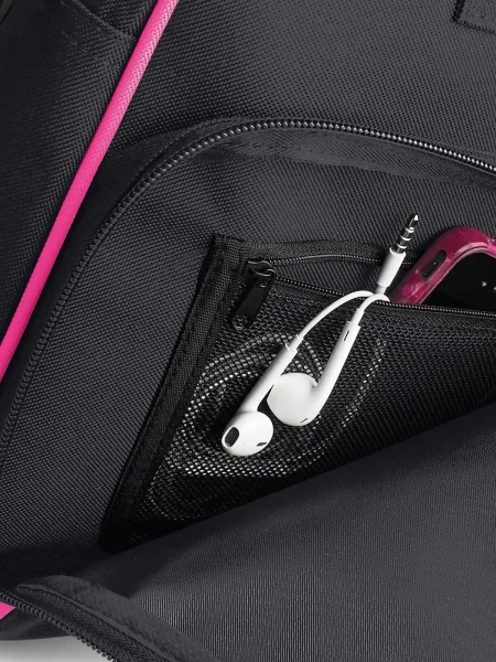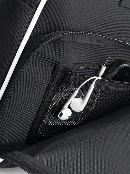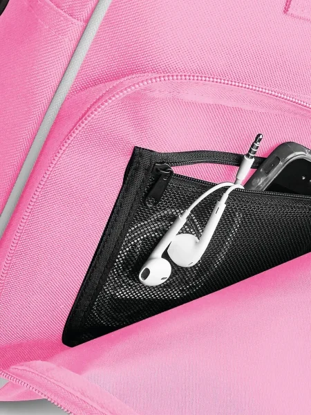 Borse promozionali con doppio manico e lunga tracolla regolabile. Tasca frontale con zip e piccola tasca retata interna. Dimensioni: 39 x 29 x 16 cm, capacita': 15 litri, area di stampa: 30 x 15 cm.