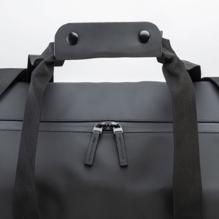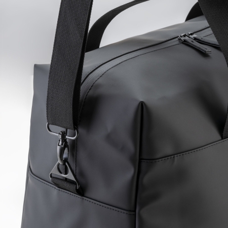 Borsa Duffle weekend in soft PU water resistant. Tasca interna con zipper, tracolla regolabile e removibile