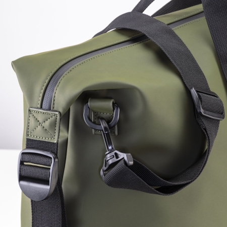 Borsa Duffle weekend in soft PU water resistant. Tasca interna con zipper, tracolla regolabile e removibile