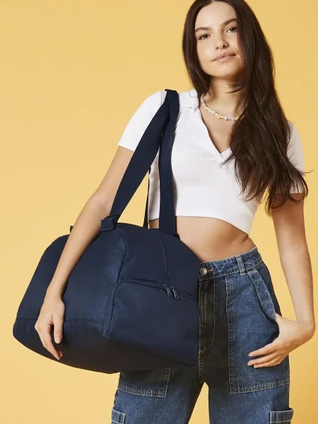 Borsone da palestra personalizzato in poliestere riciclato Bag Base. Tasca interna con cerniera, compartimento per scarpe/tasca impermeabile, tasca esterna aperta, manici a tracolla regolabile. Etichetta removibile TearAway. Poliestere riciclato certificato GRS - Control Union CU811033.