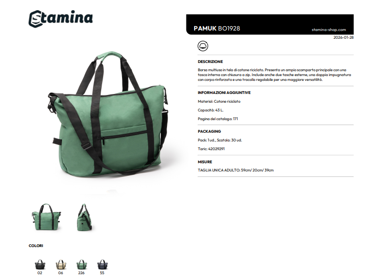 Borsone multiuso in cotone riciclato personalizzabile Pamuk