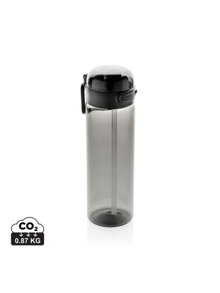 Borraccia sport SpinLock in rPET certificato RCS da 800 ml, progettata per offrire praticità e idratazione immediata durante l’attività quotidiana. Il tappo si apre con un clic e rivela una cannuccia integrata per bere facilmente con una sola mano, mentre il blocco di sicurezza evita aperture accidentali. Dotata di tracolla per un trasporto comodo, è realizzata con il 55% di PET riciclato, unendo funzionalità e sostenibilità per chi vive in movimento.