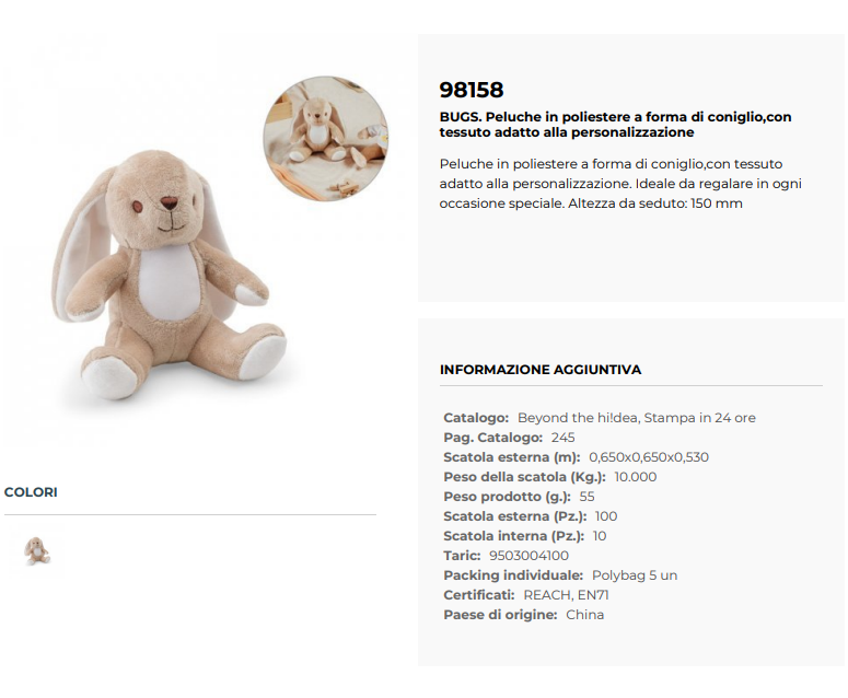 Peluche a forma di coniglio in poliestere personalizzabile BUGS