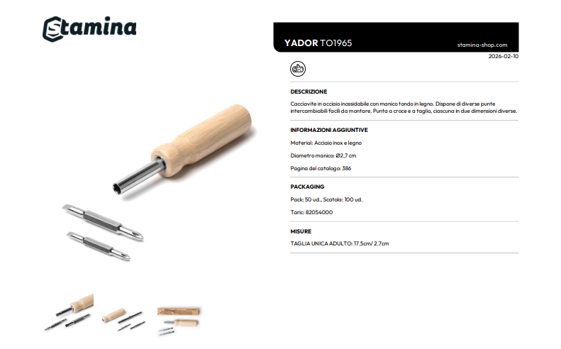 Cacciavite in acciaio inossidabile con manico tondo in legno. Dispone di diverse punte intercambiabili facili da montare. Punta a croce e a taglio, ciascuna in due dimensioni diverse.