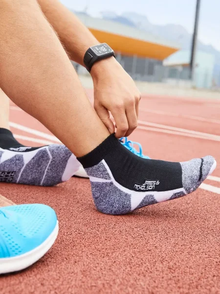 Calzini in tessuto traspirante e regolatore di umidità, cuciture piatte, tessuto rinforzato nell'area della punta e della pianta.