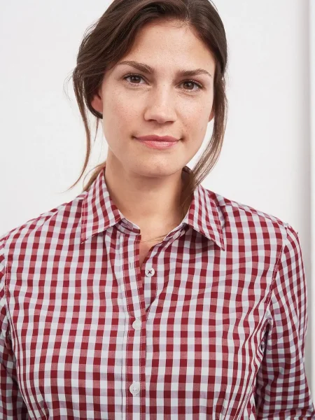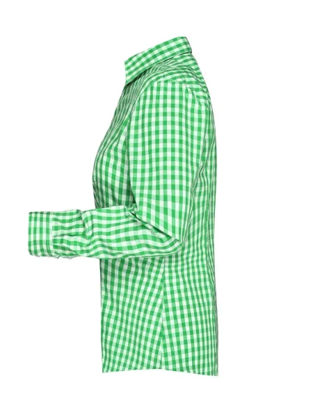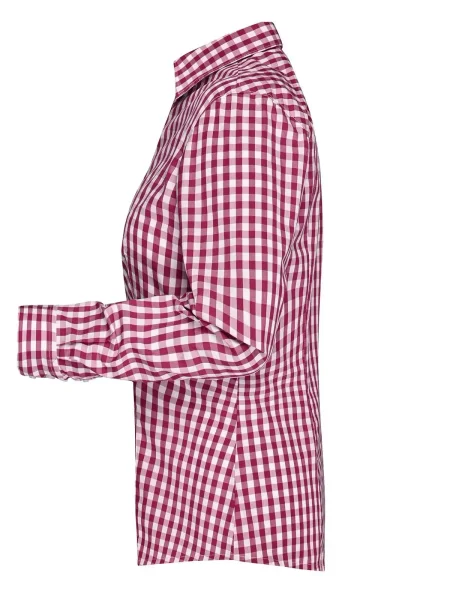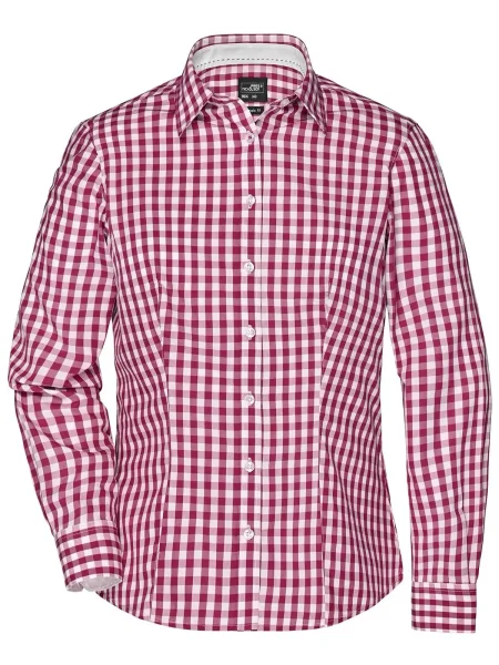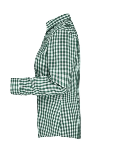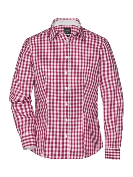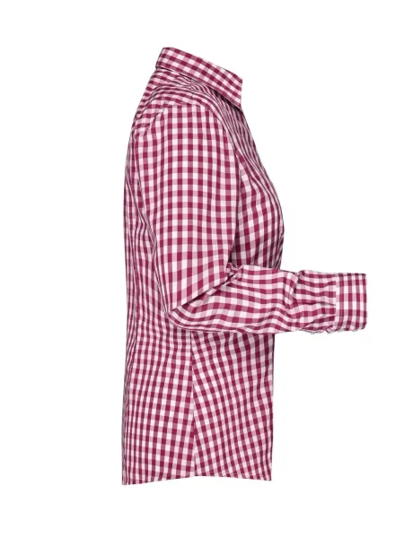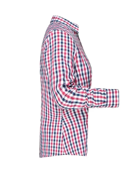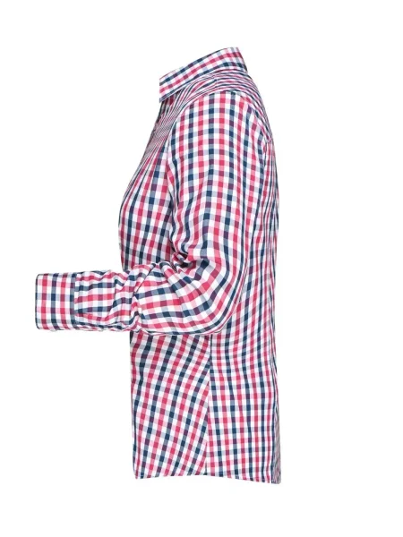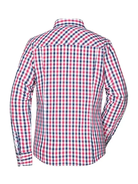 Camicie donna cotone al 100%. Camicia fashion a quadri con inserti in tinta unita sul colletto e polsini. Tessuto in popeline di alta qualità, stiro facile, orlo arrotondato, taglio femminile avvitato.