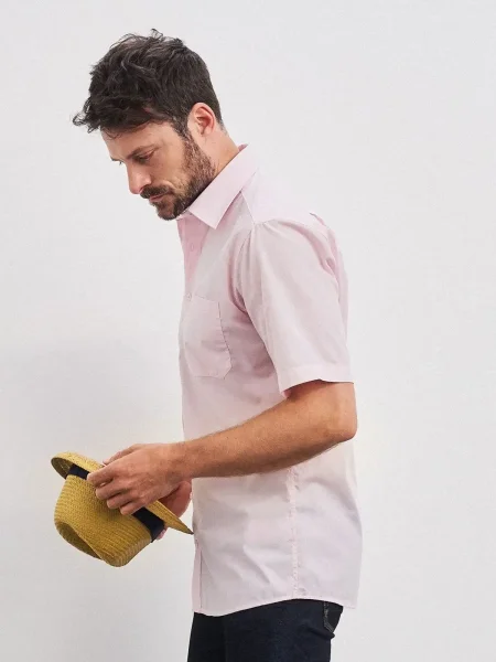 Camicia uomo Poplin James & Nicholson, classica con tessuti misti easy care, con orlo arrotondato, taglio classico, leggermente avvitato, con taschino. Pieghe sul retro.