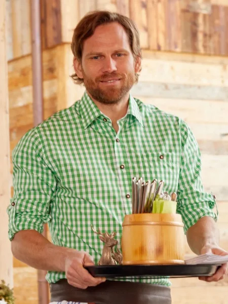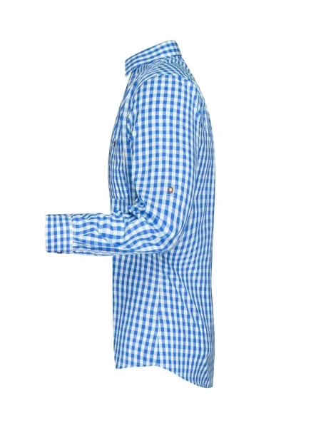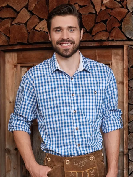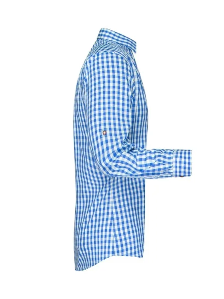 Camicetta donna e camicia uomo da classico costume tradizionale. Pregiata qualità di popeline, facile da stirare con finitura easy-care. Manica rimboccabile con linguetta e bottone, orlo arrotondato. Bottoni da costume tradizionale a imitazione del corno. Forma classica, leggermente sciancrata, tasca pettorale, 2 pieghe sulla schiena. Manica lunga, policromo, pence sulla schiena