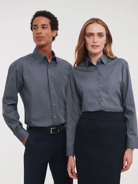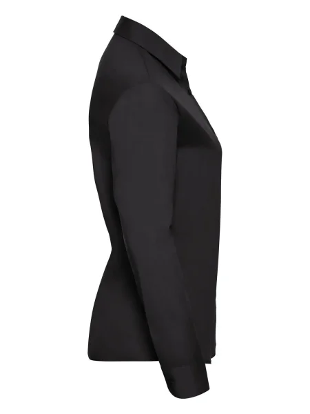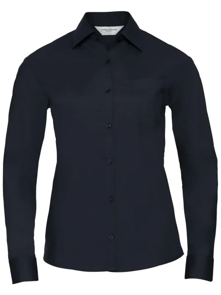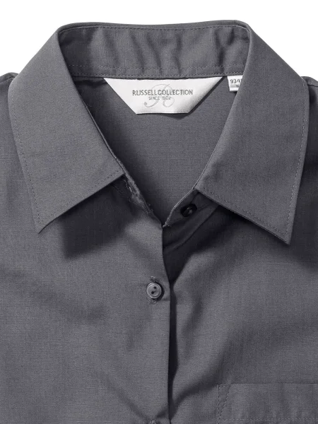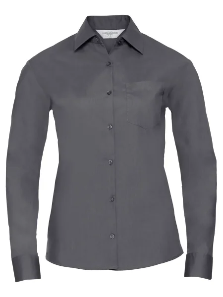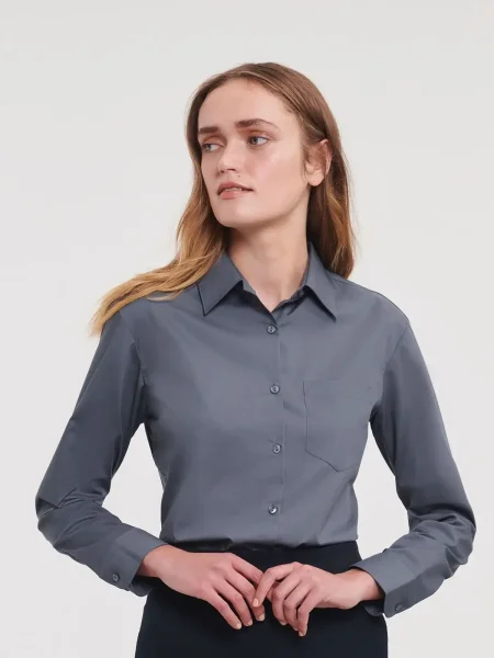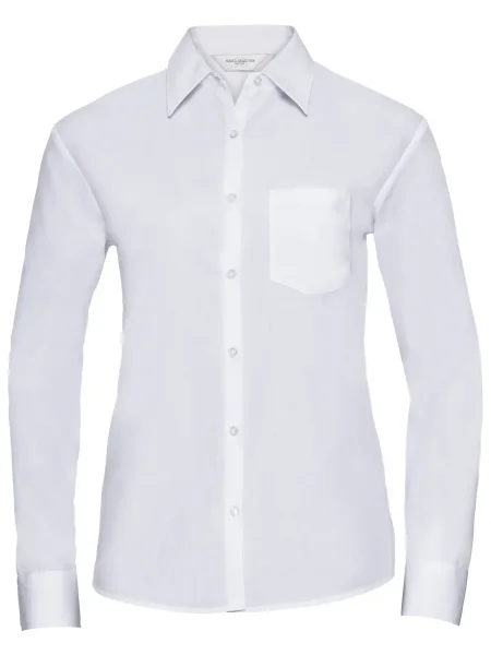 Camicia taschino donna in popeline con colletto classico con stecche, taschino a v, orlo stondato. Polsini stondati con due bottoni regolabili. (Col. 30: 110g/m²).