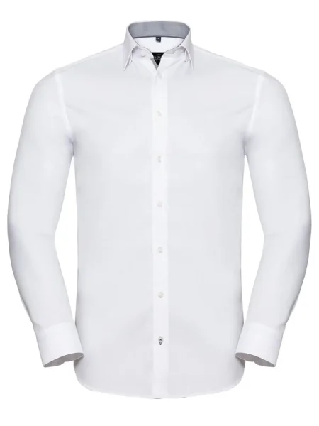 Camicia da uomo a maniche lunghe con bordi a contrasto, pinces sul retro per una miglior vestibilità, polsini stondati regolabili a 2 bottoni con occhiello per gemelli. (col. 30: 125 g/m)