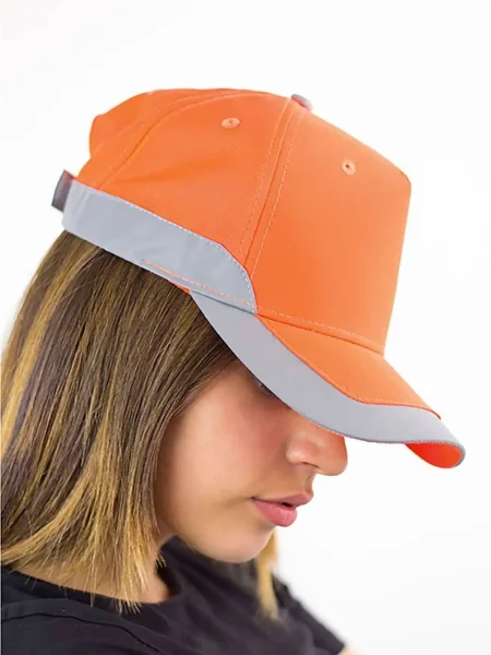Cappellino a 5 pannelli, occhielli ricamati, banda riflettente, pannello frontale rinforzato,