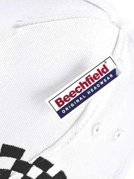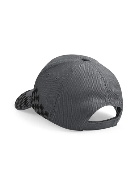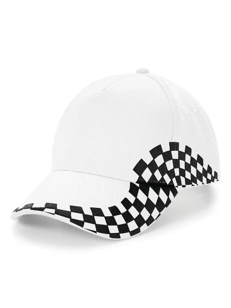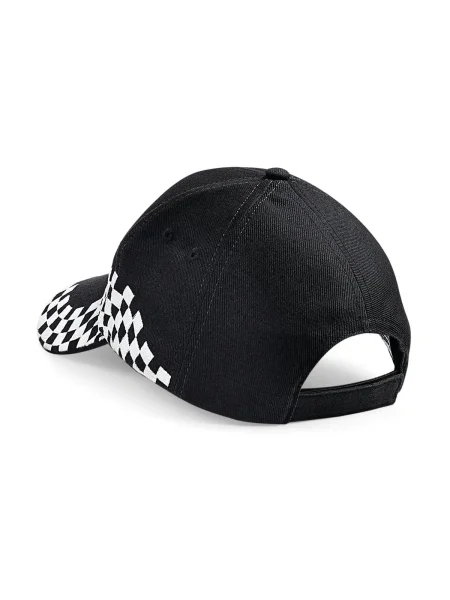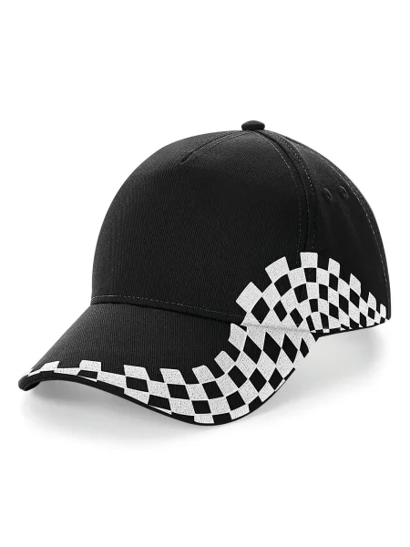 Cappellino Grand Prix Beechfield. Cappellino a 5 pannelli, motivo bandiera a scacchi, occhielli di ventilazione, regolazione della taglia con velcro a strappo.