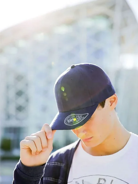 Cappellino a 6 pannelli con occhielli ricamati, sottovisiera a contrasto, pannello frontale rinforzato, visiera pre-curvata, adesivo sulla visiera, parasudore in cotone, chiusura con fibbia e foro cucito, taglia unica.