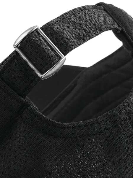 Cappellino a 6 pannelli con etichetta rimovibile, pannelli frontali strutturati, occhielli di ventilazione cuciti, visiera pre-curvata, sottovisiera e fascia tergisudore in twill di cotone, chiusura con fibbia e occhiello satinato, taglia unica.