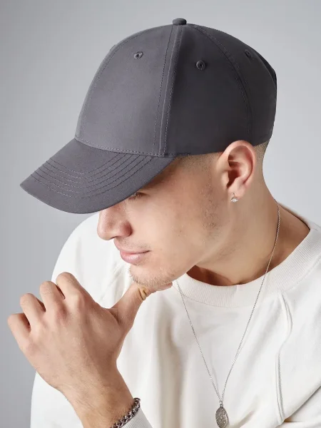 Cappellino da baseball personalizzato a 6 pannelli, realizzato in 100% poliestere riciclato con certificazione GRS. Dotato di etichetta removibile per un facile cambio del marchio, pannelli frontali strutturati, visiera pre-curvata, occhielli di ventilazione cuciti e chiusura con fibbia satinata. Ideale per un look personalizzato e sostenibile.