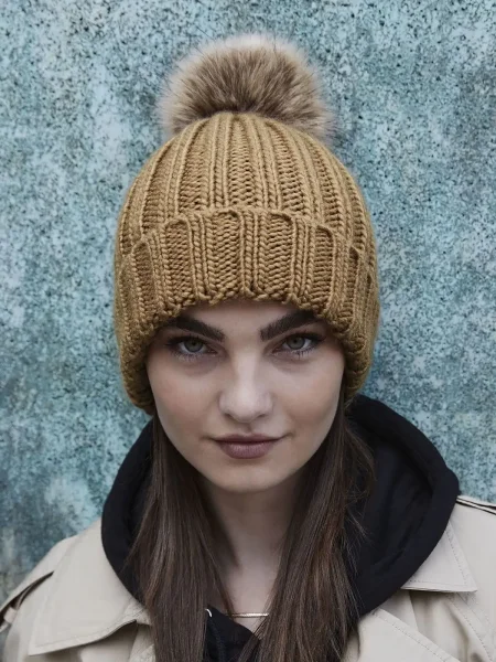 Cappellino invernale con pon pon personalizzato Beechfield Faux Fur Pop Pom Chunky