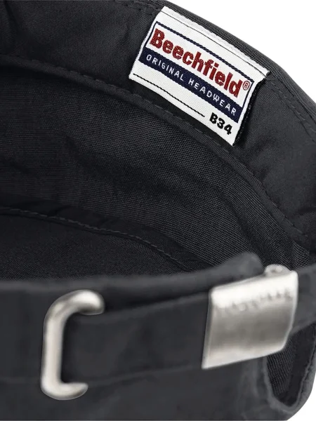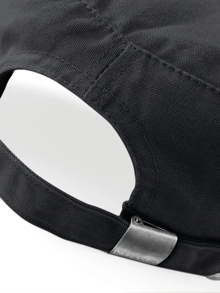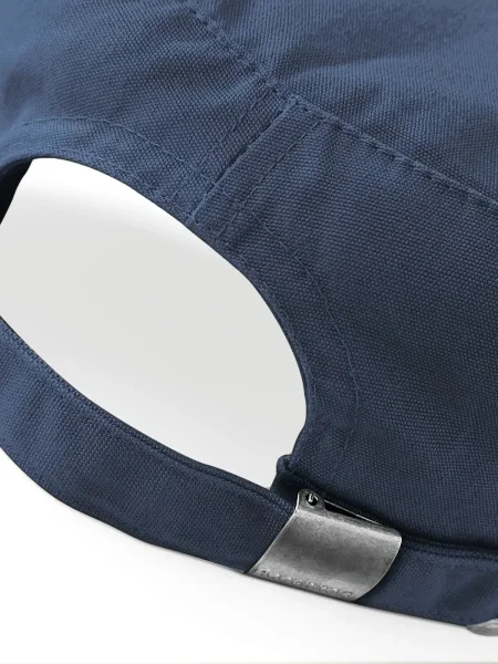 Cappellino con visiera pre-curvata, chiusura con fibbia e occhiello satinato, taglia unica.
