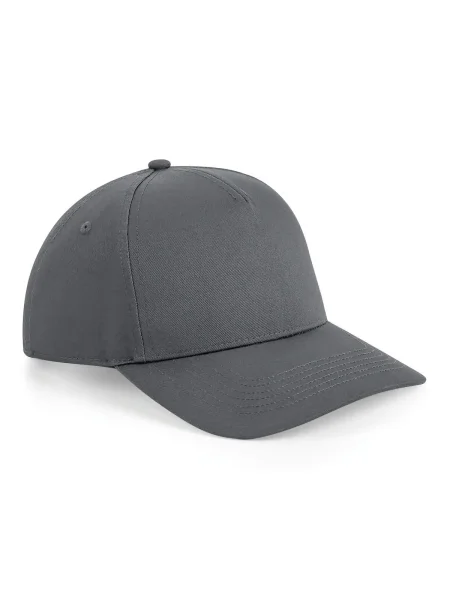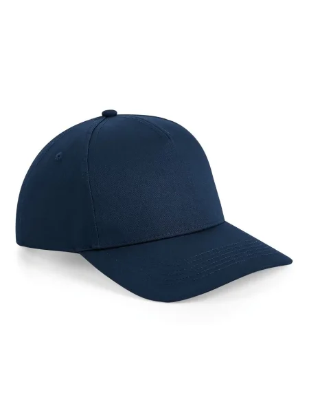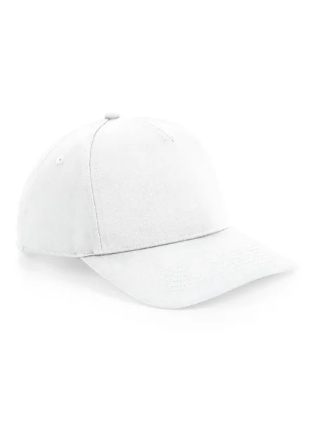 Cappellino a 5 pannelli strutturato, visiera semi-arrotondata, occhielli di ventilazione, regolatore di misura snap back, etichetta rimovibile TearAway.