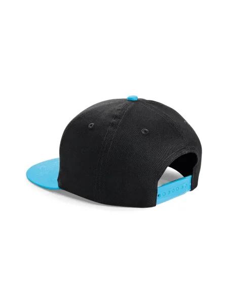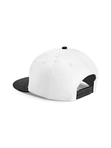 Cappellino Snapback Beechfield 100% cotone twill. Cappellino stile rap (57 cm), 5 pannelli, visiera piatta e dettagli in contrasto, etichetta strappabile, regolazione con snap-tab.