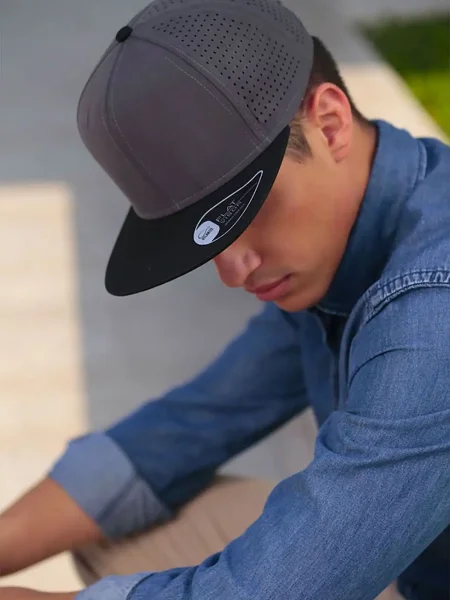 Cappellino A 6 Pannelli Con Visiera, piatta Squadrata, 4 Cuciture sulla visiera, chiusura a strappo. Taglia Unica.