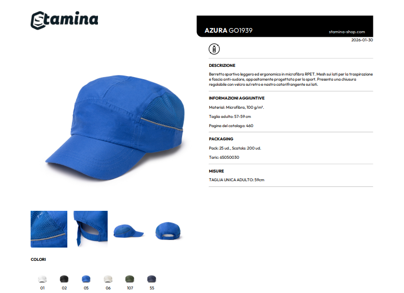Berretto sportivo leggero ed ergonomico in microfibra RPET. Mesh sui lati per la traspirazione e fascia anti-sudore, appositamente progettata per lo sport. Presenta una chiusura regolabile con velcro sul retro e nastro catarifrangente sui lati.