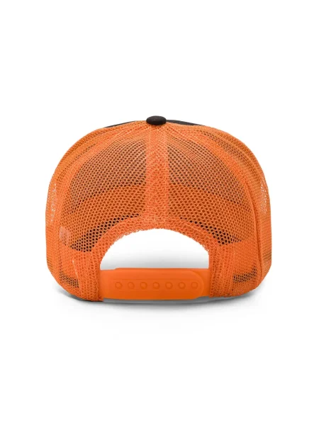 Cappellino a 5 pannelli con pannello frontale rinforzato in 100% cotone e mesh laterale e posteriore in poliestere per una traspirabilità ottimale. Dotato di visiera pre-curvata con 6 cuciture decorative per un tocco classico e curato. La chiusura posteriore in PVC consente una regolazione semplice e sicura. Ideale per la stampa e la personalizzazione, è perfetto per eventi, merchandising o uso quotidiano con uno stile sportivo e funzionale.
