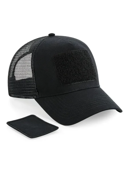 Cappellino Patch Snapback Trucker Beechfield 100% Cotone pannello frontale e visiera. Pannelli posteriori a rete 100% poliestere. Cappellino a 5 pannelli, etichetta TearAway per cambiare più facilmente il marchio, visiera pre-curvata, Stemma Rip-Strip intercambiabile progettato per essere decorato, regolatore Snapback.