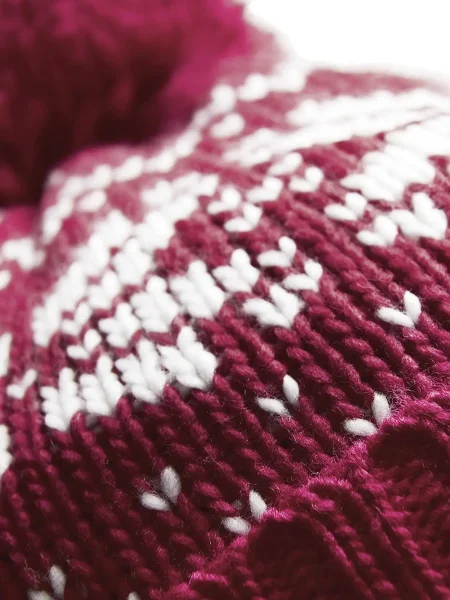 Cappellino Fair Isle Snowstar Beanie Beechfield 100% acrilico soft-spun. Cuffia di maglia intrecciata con effetto lavorato a mano, pon-pon colorato, modello con risvolto, taglia unica.