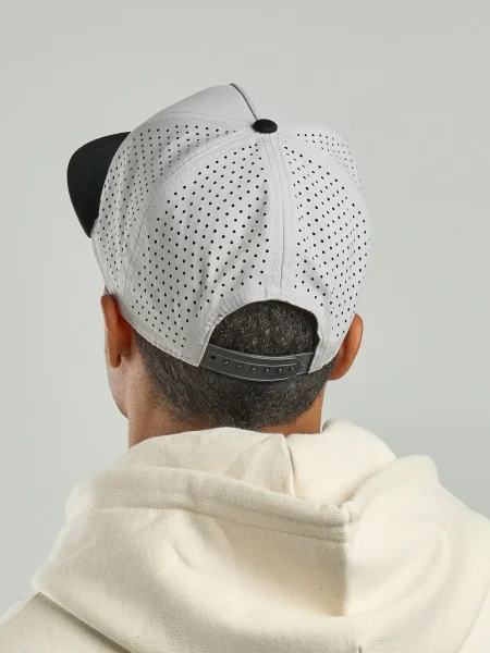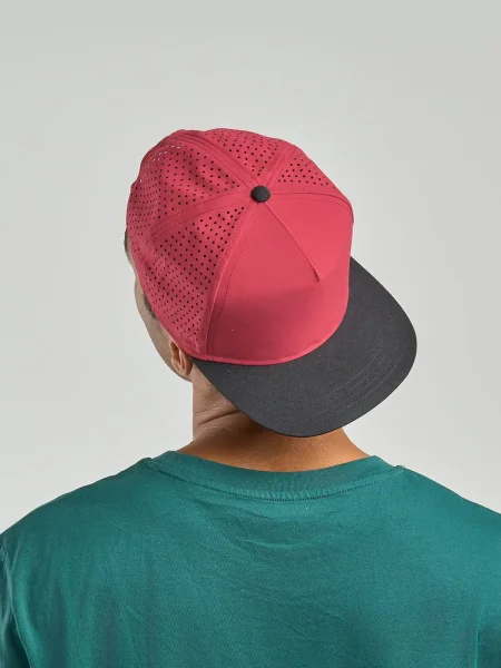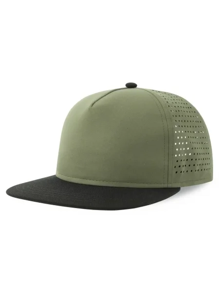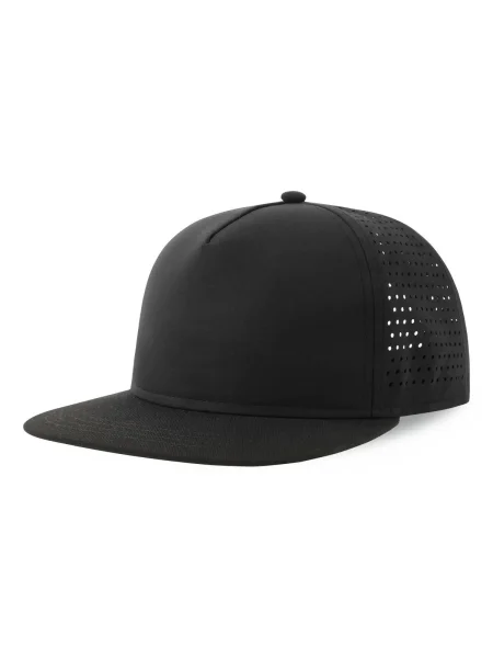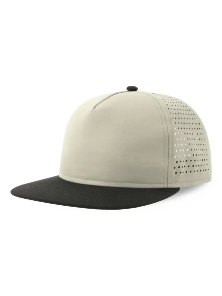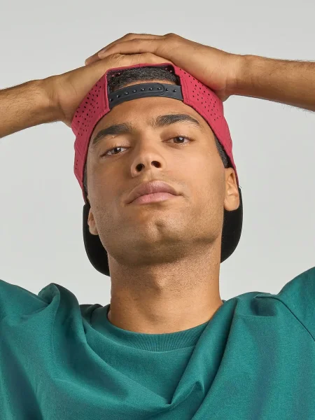 Cappello snapback profilo streetwear dal design strutturato a 5 pannelli, realizzato con materiali sostenibili per un look alla moda ed eco-friendly. La calotta è in microfibra di poliestere riciclato, mentre la visiera piatta è in twill di poliestere riciclato, garantendo resistenza e stile. Dotato di chiusura in PVC riciclato, presenta 4 cuciture sulla visiera per una maggiore durabilità. I fori laserati sui lati e sul retro assicurano una ventilazione ottimale. Completa il design un’etichetta removibile, perfetta per personalizzazioni o per un look minimalista.