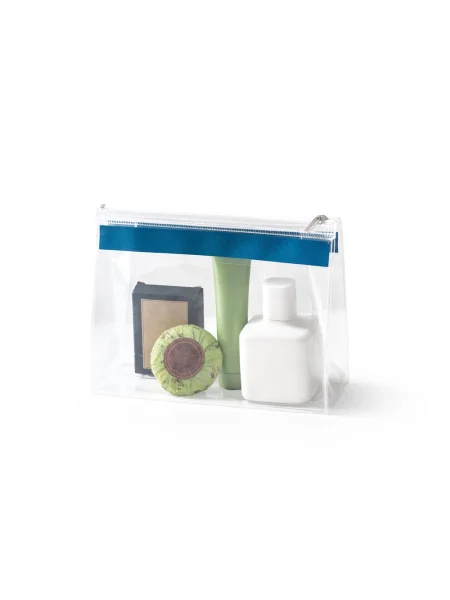 Pochette in EVA trasparente con cerniera e zip metallica. Adatto ai viaggi in aereo.