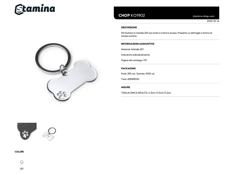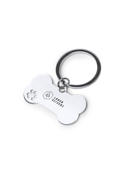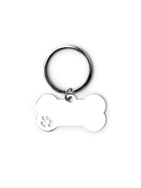 Portachiavi in metallo 201 con motivo a forma di osso. Presenta un dettaglio a forma di zampa sul lato.