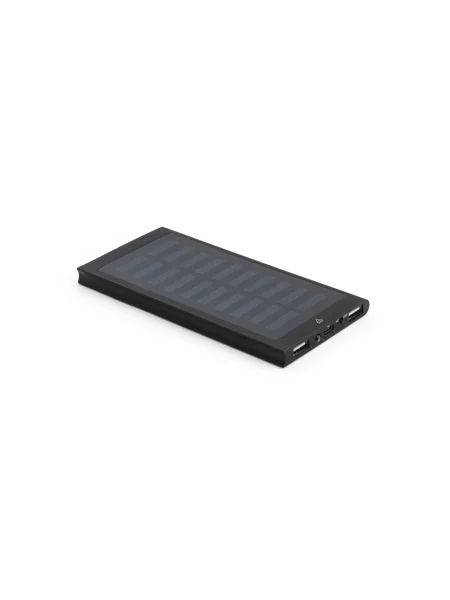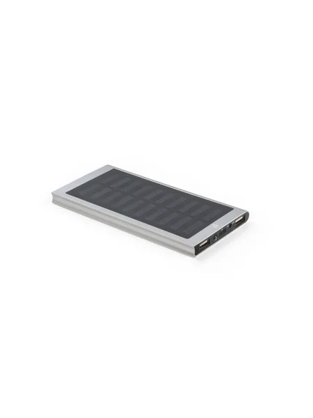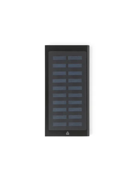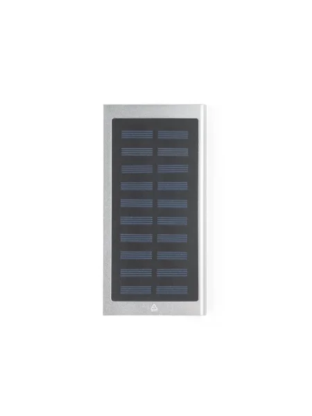 Power bank con pannello solare e torcia integrata, realizzata in alluminio riciclato 100% rAL. Progettata per garantire energia nelle situazioni di emergenza, permette la ricarica tramite pannello solare e dispone di torcia LED. La batteria da 8.000 mAh è dotata di indicatore di livello e offre una porta di ingresso USB-C e due porte di uscita USB-A per collegare più dispositivi. Inclusi cavo di ricarica USB-C e confezione regalo in carta kraft. Dimensioni: 10 x 153 x 74 mm.