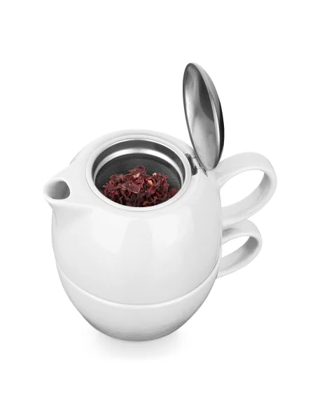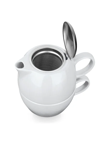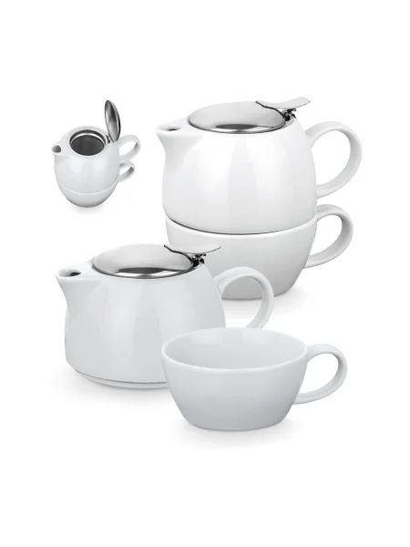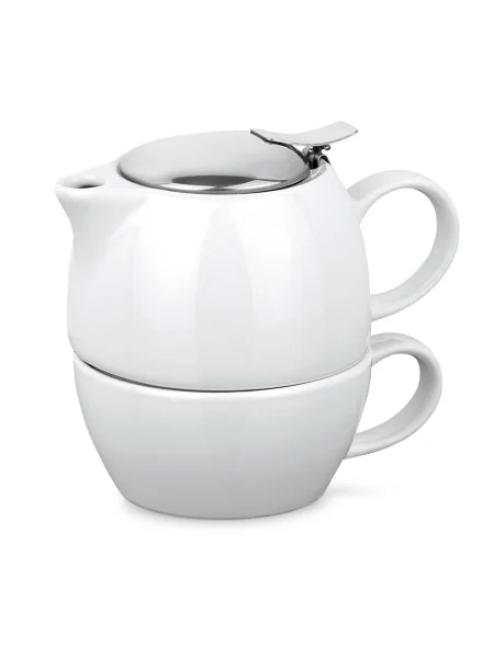 Set 2 in 1 da tè in porcellana. Il set include una teiera con filtro in acciaio inox (440 mL) e una tazza con capacità fino a 280 mL. Fornito in scatola regalo.
