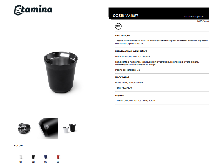 Tazza da caffè in acciaio inox 304 riciclato COSIK